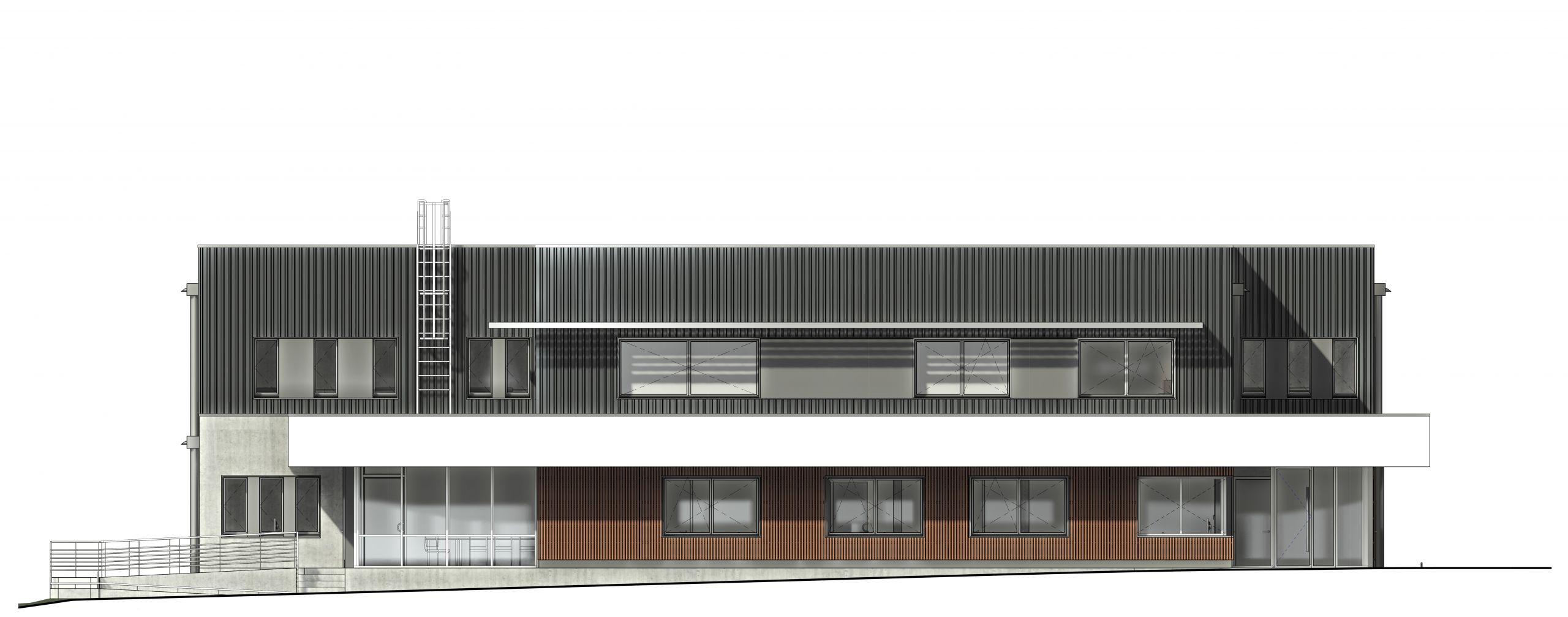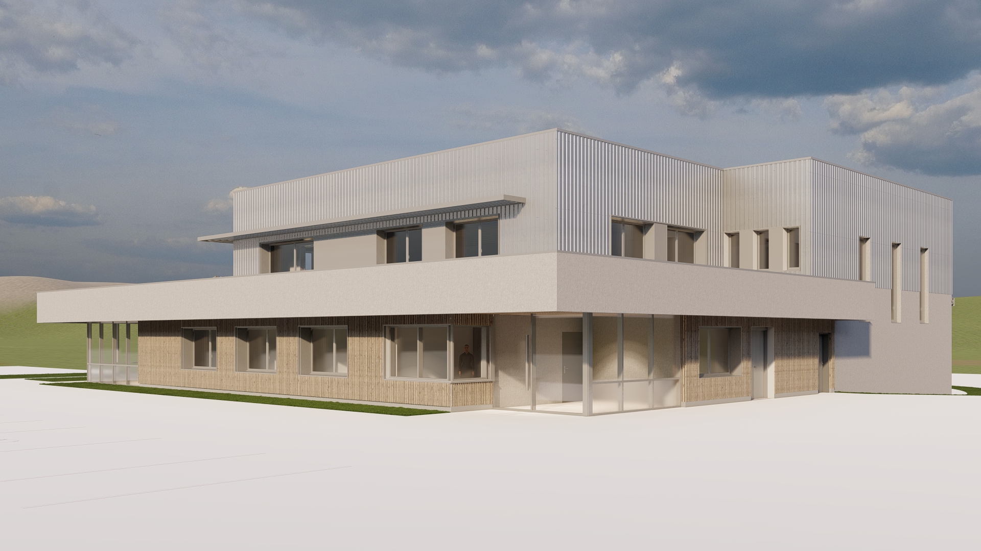 Implanté à Peillonnex près de la déchèterie, ce centre associe un espace industriel et un pôle administratif. La partie technique repose sur un socle béton avec une couverture métallique grise, tandis que les bureaux adoptent une structure et des façades en bois avec de grandes ouvertures. Une terrasse végétalisée au R+1 et des panneaux solaires en toiture supérieure renforcent les performances environnementales.