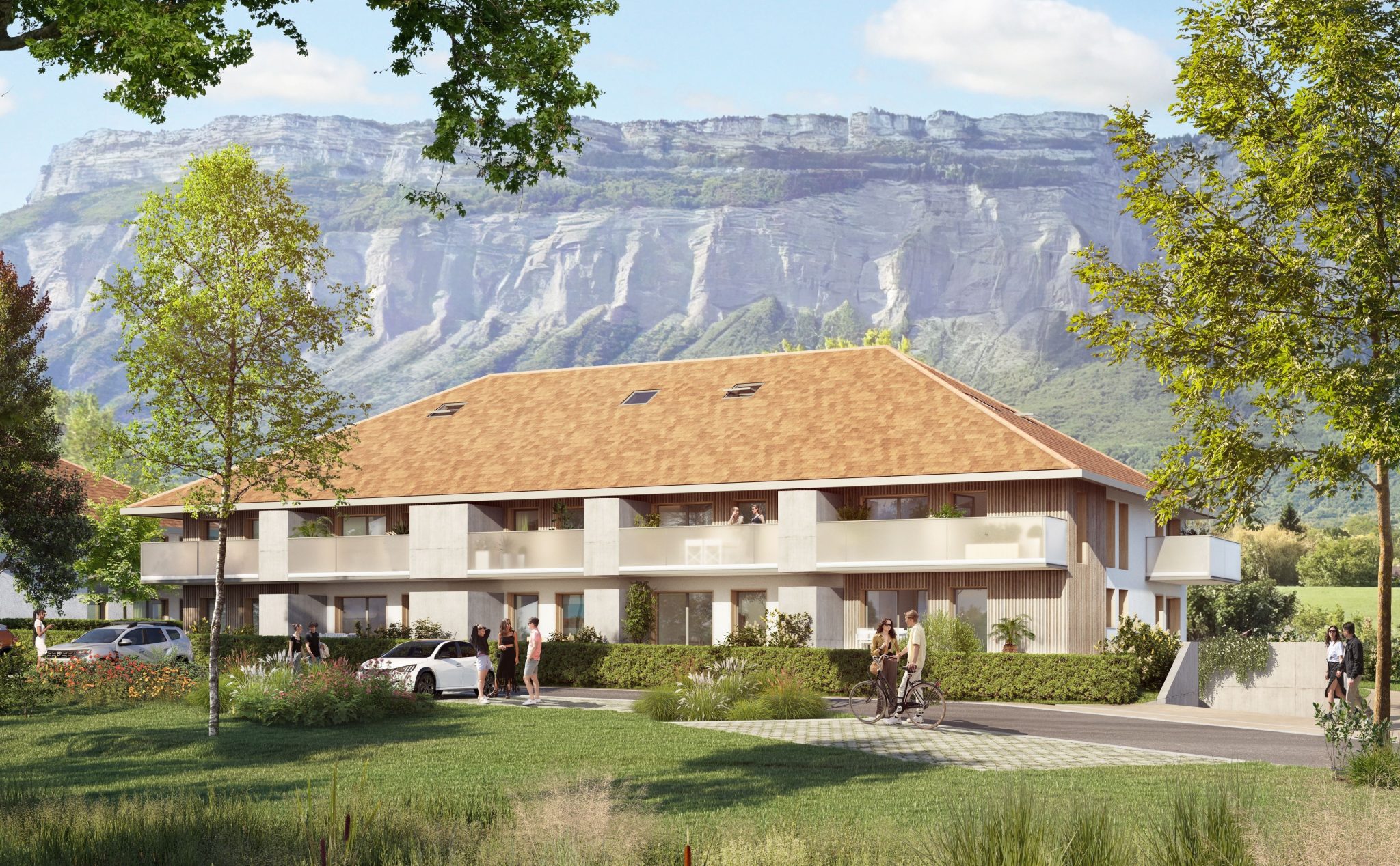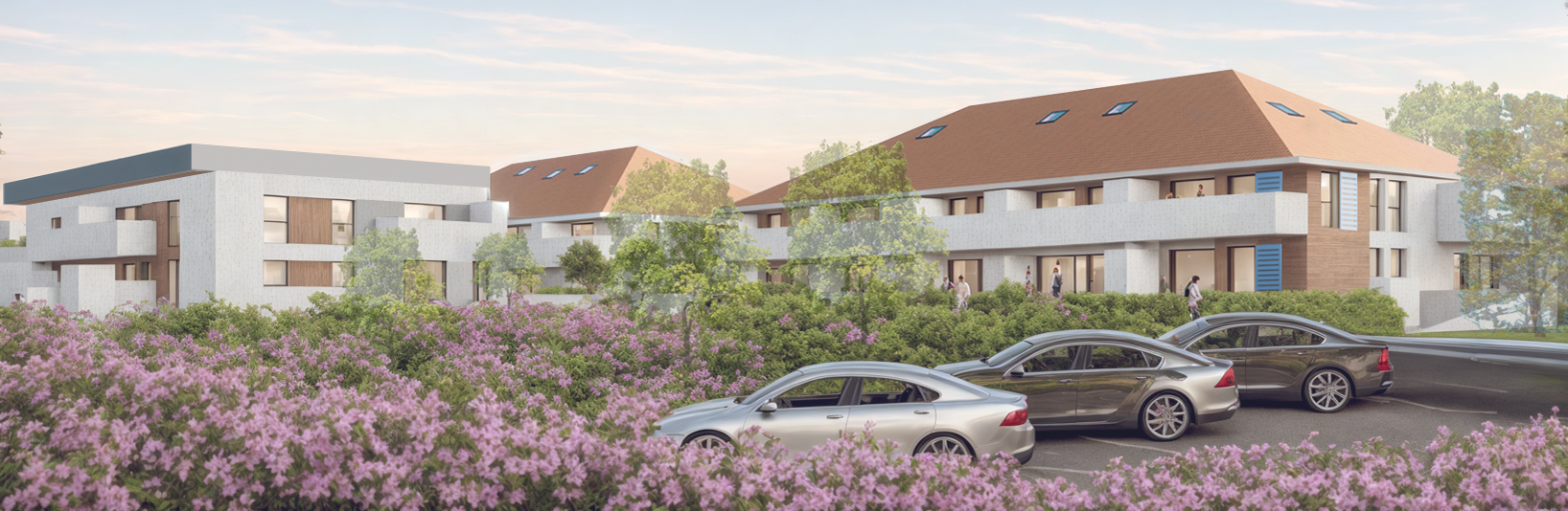 À Montbonnot-Saint-Martin, ce projet de trois bâtiments s’intègre harmonieusement au bâti existant. En adoptant des volumes simples et structurés avec des tuiles et menuiseries aux teintes unifiées, il crée des rappels subtils entre chaque construction tout en affirmant leur identité propre par des gabarits variés, des hauteurs différenciées, des dépassées de toiture et des ouvertures aux formes contrastées pour un ensemble cohérent et vivant.