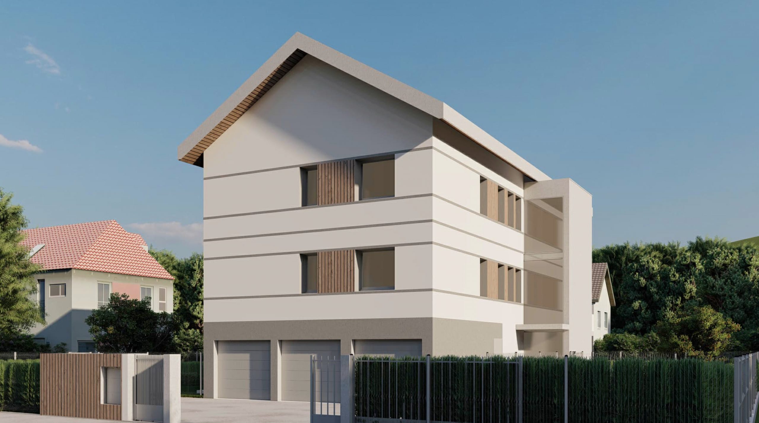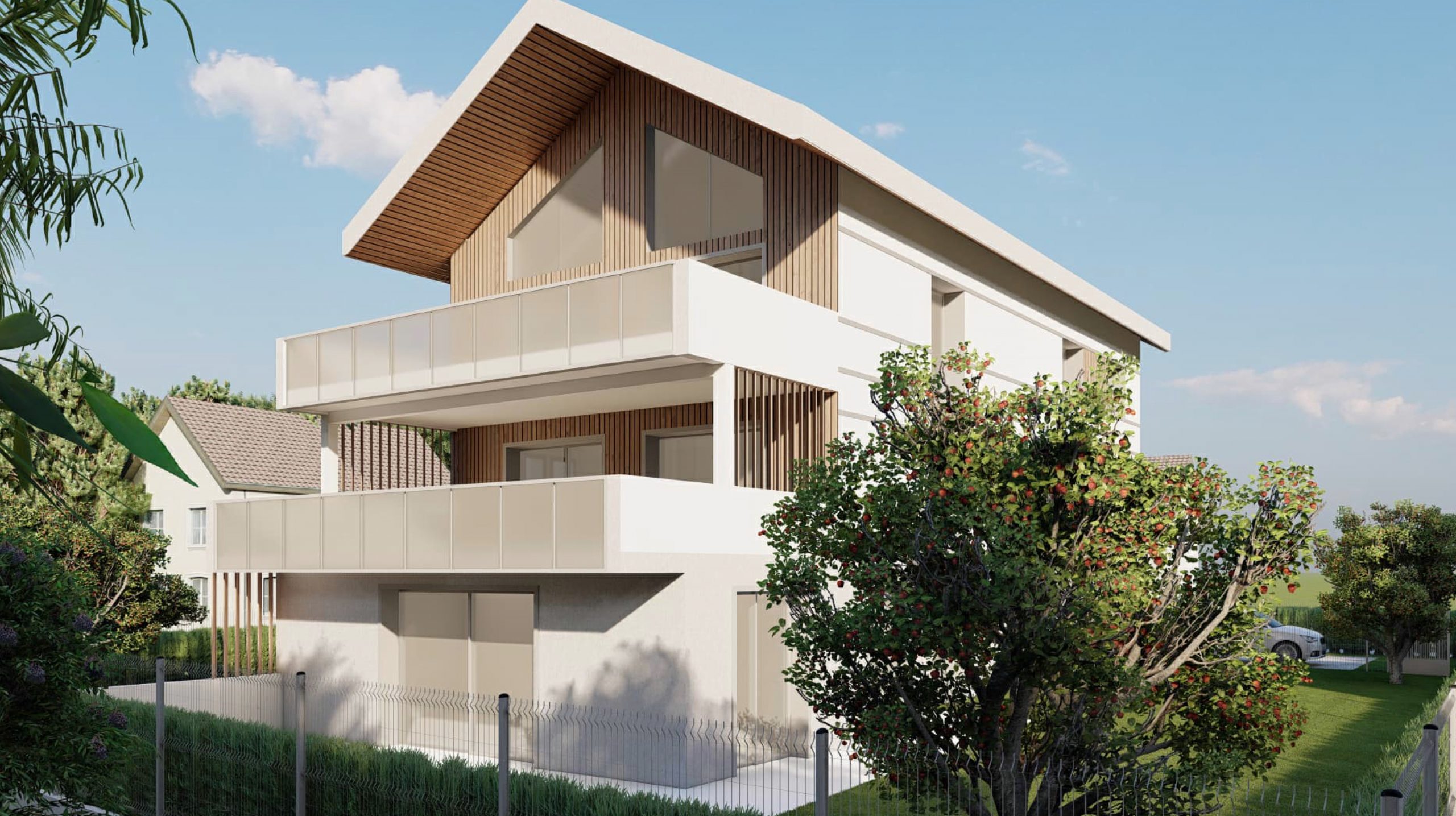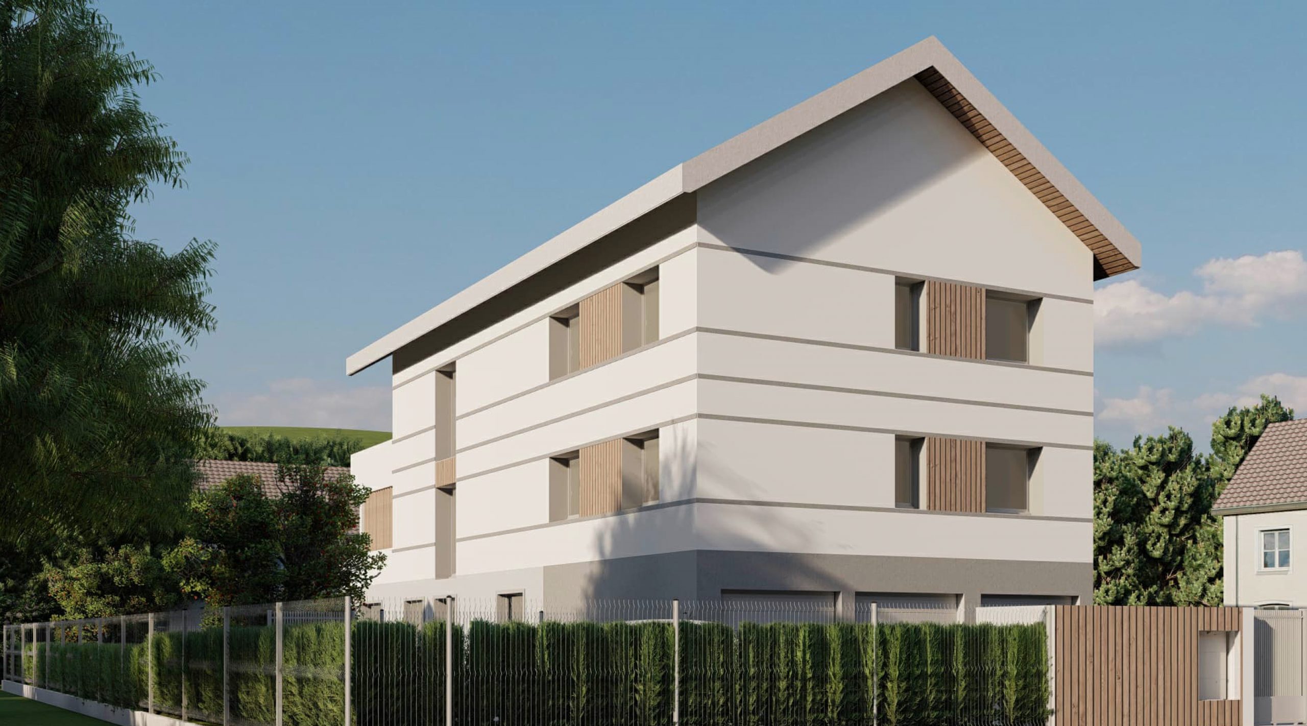Dans un quartier résidentiel d’Annecy, ce projet vise la réhabilitation et l’extension d’une maison individuelle en trois logements collectifs en y ajoutant une surface modeste via deux extensions (pièce à vivre et circulation avec ascenseur).