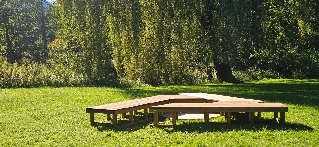 Dans le cadre du partenariat ENSAG – Tsukuba, ce workshop encadre 35 étudiants pour concevoir par design paramétrique deux pavillons bois à peaux métal prélaqué perforé, trois decks et du mobilier par pliage de tôle. Fabrication numérique CNC et jet d’eau assure la réalisation précise. Installés dans le parc du Château de Vizille, ces dispositifs améliorent les aires de pique-nique entre architecture, land art et mobilier urbain.